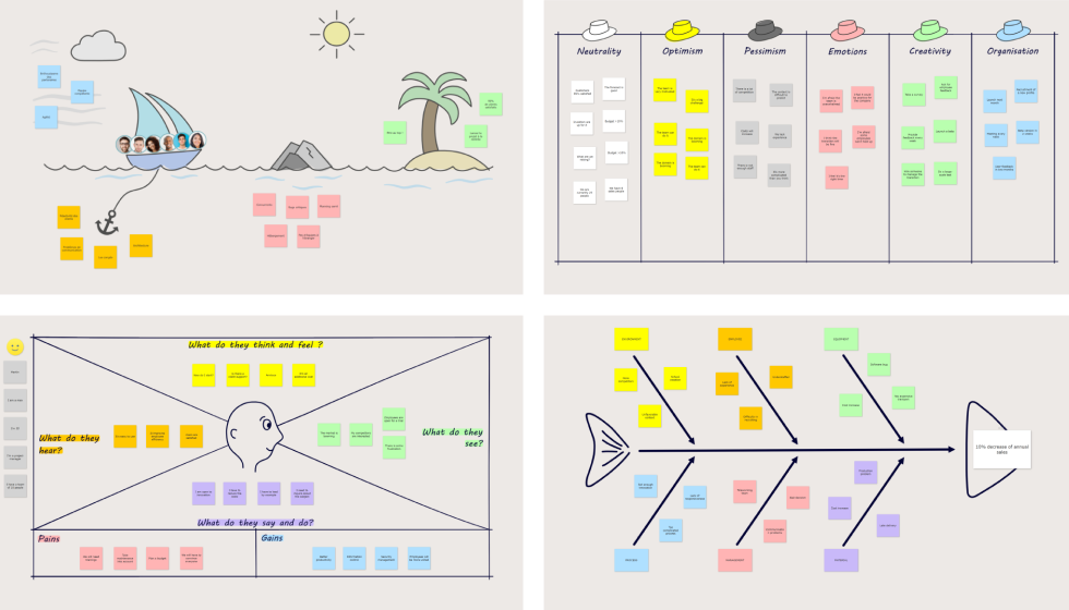 Utilisez nos templates prêts à l’emploi pour structurer vos ateliers en un rien de temps. Invitez facilement des participants (même externes), tout en gardant le contrôle.