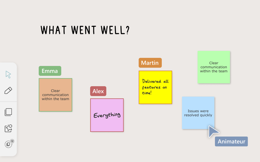 Retrouvez la simplicité d’un brainstorming sur post-its, avec toute la puissance du digital : une interface intuitive pour vos participants, accessible depuis n’importe quel appareil. Mais aussi, un stock illimité de post-its et des feutres qui marchent !