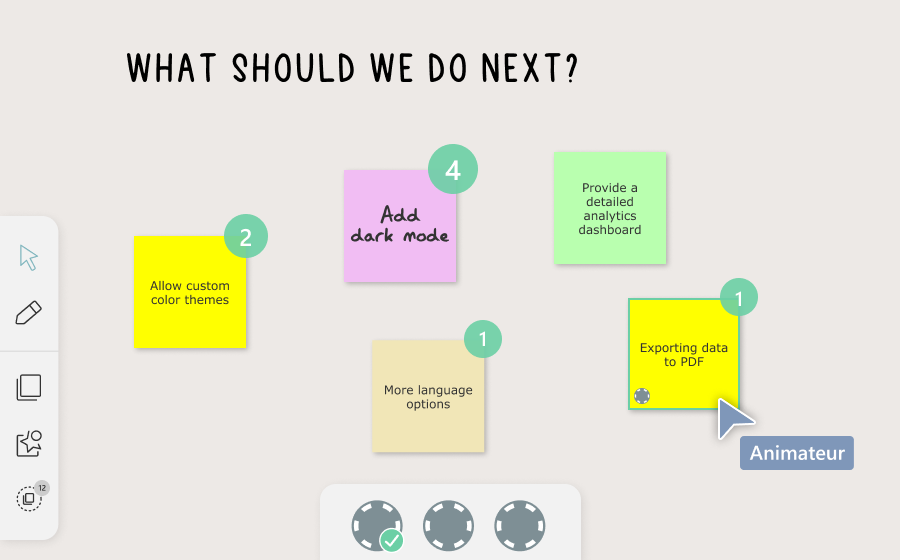 Simple, visuel, et efficace – Yellow vous permet d’engager tous les collaborateurs dans la prise de décision. Grâce aux outils visuels (vote, sondage, feedback), chacun a la possibilité de s’exprimer librement sur les décisions clés.